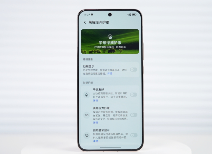 这款荣耀magic7的屏幕表现也可圈可点,为6.78英寸的OLED直屏,做到了视觉四等边的设计,支持1~120HZ LTPO自适应刷新率,还给到了4320Hz的超高频PWM调光。即便上市了一年时间,但它的护眼效果依旧是行业第一梯队。峰值亮度为5000尼特,太阳光下还可以正常的浏览短视频和刷网页。而超声波3D指纹的解锁体验也不输大部分中端手机。